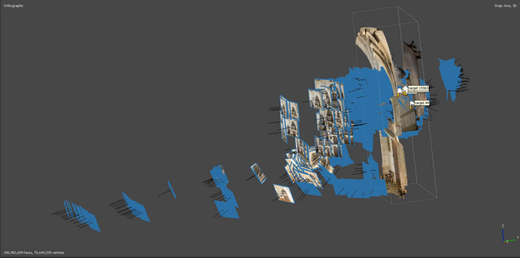 El conjunto total asciende a unas 1366 fotografías. Que dieron como resultado un modelo de 159 millones de polígonos, acompañado de dos nubes de puntos de unos 250 millones de puntos.